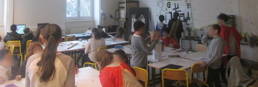 Dans toutes les classes, la variété des productions est remarquable : sculptures, reliefs, peintures (de tous formats et tous supports), collages, projets numériques. Le partage du QR code assure toutefois des problématiques communes.