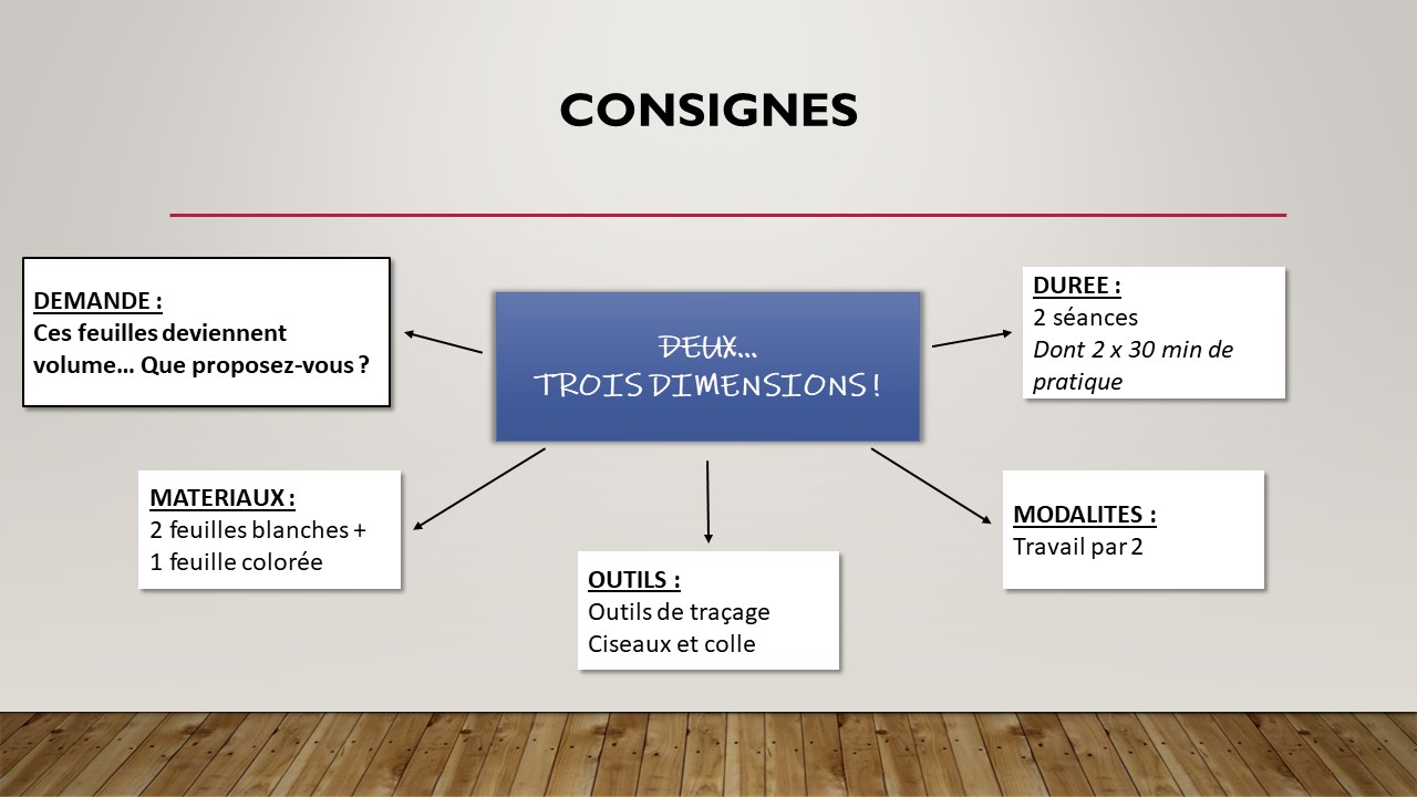 Les élèves comprennent rapidement qu’ils devront « basculer » du plat au volume en exploitant les feuilles de papier disposées préalablement sur les tables.
