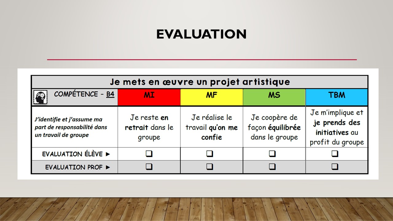 L’évaluation portant sur le travail en équipe, les élèves font un retour sur le vécu du travail en groupe : répartition des tâches et notion d’équité, rapidité pour réaliser une production commune, mais aussi difficulté à expliquer son point de vue et à faire des concessions en cas de désaccord.