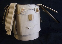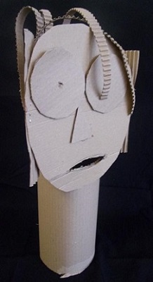 Passé un certain temps, le matériau carton ayant été dompté, avec ruse ou détournement dans sa ressemblance avec la réalité, l’élève va spontanément ou par mimétisme s’interroger sur l’identité de sa fabrication. En effet, la suite se déroule en détails significatifs, reliefs, mais également en éléments identitaires (lunettes, coupe de cheveux, moustaches, cou, buste…)