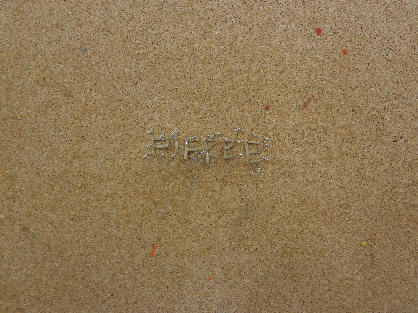 "J'ai commencé par fabriquer les lettres de mon prénom avec différents matériaux. Ensuite je me suis aperçu que cela faisait un mot énorme. Alors pour évoquer quand même le murmure, j'ai cherché à dissimuler mes lettres dans un décor chargé."