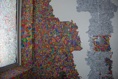 En travaillant cette notion, et en menant des recherches sur les artistes tels que Matisse, Kandinsky, Rothko, Lily Van Der Stokker (entre autres), une évidence s'est imposée : son travail, qui repose sur un acte quasi-obsessionnel, comporte en soi un caractère proliférant. La quantité et la répétition des mêmes gestes induisent de fait une temporalité qui devient sensible au regard de l'espace investi peu à peu par ses dessins.