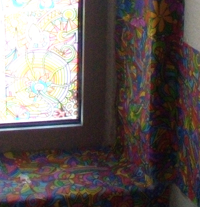 L'étude du Vitrail du bon Samaritain, et d'autres vitraux contemporains comme ceux de Buren par exemple, a également amené une prise de conscience de la relation existant avec son propre mode de dessin (cloisonné). Très vite l'idée de travailler sur calque s'est imposée ainsi que d'afficher ses dessins sur une fenêtre. De là, un travail en expansion dans l'espace réel s'est développé.