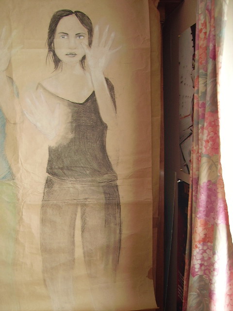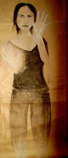 Qu'on s'en défende l'élève de lycée veut s'exprimer, se raconter et souvent attribue à l'élaboration de la forme (artistique) un souci secondaire. Le projet-dessins d'Armelle pourrait renvoyer à cette matrice autobiographique parfois réductrice dans ses visées si la question de la transposition artistique n'était pas clairement posée. Mais Armelle affectionne particulièrement le travail de figuration « réaliste » d'Ernest Pignon Ernest et ses « icônes païennes » dont parle avec justesse Michel Onfray. Elle s'en nourrit s'en pour autant le plagier ; elle en a compris le processus formel et conceptuel.