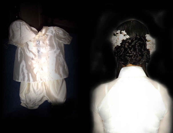 J'ai essayé de fusionner plusieurs passions, plusieurs univers, plusieurs espaces.Mon espace privé et certaines de mes parures ont été mises en scène, photographiées puis retravaillées avec l'outil infographique. Je voulais créer un univers flottant sur le jeu des regards, des postures, des oppositions de matières, de textures, du flou et du net, du proche et du lointain, du noir et de la couleur. J'ai choisi de présenter mon travail en diptyque pour renforcer l'aspect narratif et l'idée de frontières fragiles entre rêve-fiction et réalité.