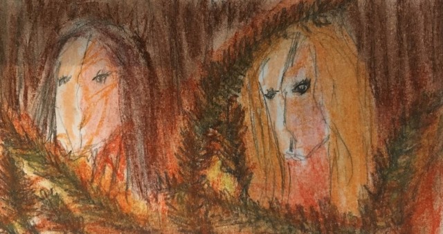 Une fois la photo imprimée, j’ai demandé à mon entourage de me donner ses impressions en regardant cette image. La notion de camouflage est ressortie, comme deux guerrières à l’affût dans la nature. Un sentiment de féerie, de fantastique comme deux elfes habitant une forêt lumineuse. Une impression de montage photographique comme si les modèles avaient été rajoutés dans la photo par un logiciel numérique. Ou bien aussi une référence à la mythologie où des déesses de la nature montrent leur pouvoir sur le promeneur osant s’aventurer dans les sous-bois. Une allégorie de la forêt habitée par des esprits.