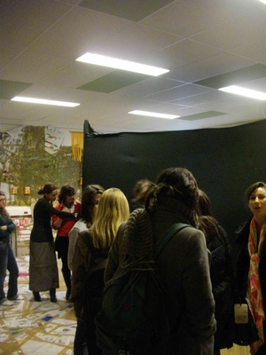 Puis le travail se divise en 3 groupes : fin de l'installation, réalisation du carton d'invitation en vue de l'exposition et montage vidéo.