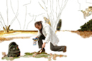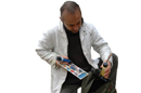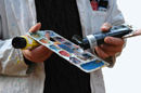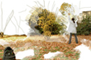 Avec ces photos, j'ai réalisé des montages sur photoshop afin de montrer que le personnage peint un paysage, son paysage, le paysage dans lequel il évolue. Une fois les montages terminés et les photos imprimées, je les ai collées dans un ordre chronologique sur un dépliant de ma fabrication.