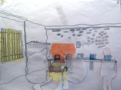 L'idée d'utiliser du calque est venue de l'intention de créer du flou, image qui s'est imposée à lui lorsqu'il a essayé d'imaginer différentes représentations de la classe et qu'il voyait ces images bouger.