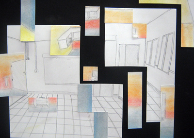 Timidement elle a commencé à découper un morceau par-ci, un morceau par-là après avoir tracé un quadrillage identique sur chacun de ces dessins "comme si c'étaient des gros pixels", lui a dit sa voisine. Cette trame la rassurait, c'est ce qui créerait un lien entre ses deux dessins.