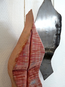 La matière est omniprésente, visible dans son aspect brut, présente dans son épaisseur et sa senteur (le cèdre est en effet très odorant). Les bas-reliefs, aux allures de « poissons séchés », se rapprochent du travail sur bois de Stephan Balkenhol, dans son aspect à la fois brut et extrêmement ciselé. La matière, c'est aussi les reflets métalliques : les éléments d'acier ont été travaillés pour parvenir à la forme recherchée.