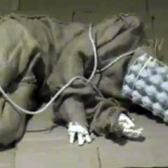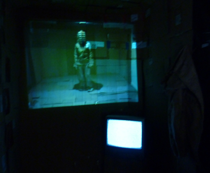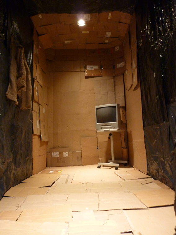 Les visages deviendraient des masques de fortune mais en relation avec les masques de bois peint des momies égypto-romaines, enlaçés autour de la tête du mort Le lieu serait conçu comme un non-lieu constitué de plusieurs couches de carton récupéré, il pourrait aussi évoquer les tombeaux des pharaons. Le choix d'une forte esthétisation me protégeait d'un projet trop morbide et me semblait donner une certaine distance à cette fiction. Progressivement mon projet a évolué avec l'ajout d'objets de la salle de classe comme le poste de télévision et deux supports, la chaise tournante. Ce sont devenus des personnages à part entière de mon projet, ils sont conçus comme les éléments « vivants » de l'ensemble même si l'écran de télévision ne renvoie que l'absence de lien avec le monde extérieur. Pour le tournage des situations, j'ai cherché à diversifier les points de vue et les cadrages pour au montage agir sur la perte progressive des repères de temps et d'espace ; pour la lumière je me suis appuyé sur les installations existantes du couloir de la salle d'arts plastiques et l'écran de télévision. Enfin le choix de l'album instrumental Ghosts I-IV de Nine Inch Nails m'a paru complètement en accord avec mon projet de fantômes et le questionnement sur la surface des choses.