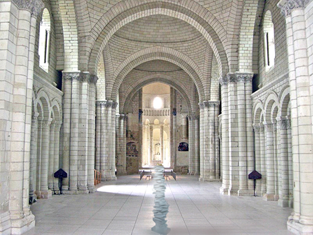 Le personnage est un gisant, c'est à dire la représentation d'un mort, qui semble dormir tels que ceux qui occupent la nef de l'Abbaye de Fontevraud. Recouvert de feuille d'or, ce gisant est sacralisé par le socle et par cette matière qui réfléchit la lumière réelle.