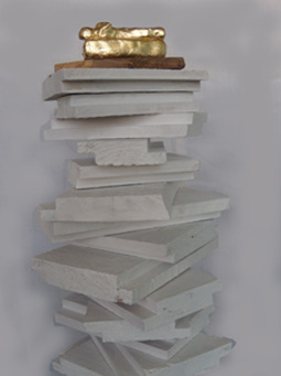 Le socle est une métaphore de la vie; les morceaux sont les différentes étapes de la vie, les épreuves, les accidents. Cet empilement évoque ce que font les hommes pour arriver en haut, c'est à dire aux buts qu'ils se sont fixés dans la vie. Ainsi toute leur vie, ils cherchent à s'élever pour finalement mourir.