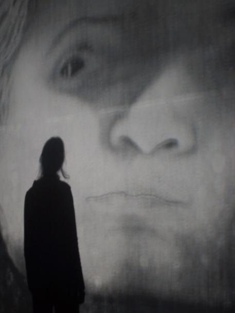 Fascinée par ce moulage séduisant dont elle ne voulait pas se satisfaire pour ne pas tomber dans la contemplation de soi, Naïla est revenue à ses photocopies, les a photographiées et a cherché un moyen de s'introduire physiquement dans le résultat final (les empreintes de son visage prenaient des airs de masques mortuaires qui la troublaient mais qu'elle trouvait trop éloignés de ce qu'elle se sentait être : vivante). Etre présente dans l'œuvre aboutie l'amena à la conception d'une performance dont les photographies témoignent. La présence de tierces personnes sur scène renvoie aux regards des autres qui participent à la construction abstraite d'une altérité qui échappe à celui qui est observé.