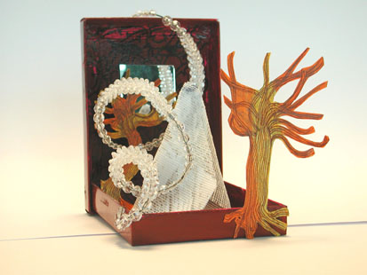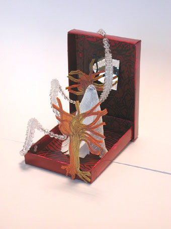 boîte cartonnée et divers matériaux, acrylique et feutre,