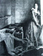 Elle a un oeilleton et, à travers, on peut voir la tête crispée de Marat qui vient de se faire poignarder par Charlotte Corday.