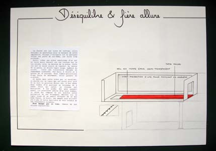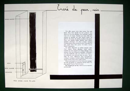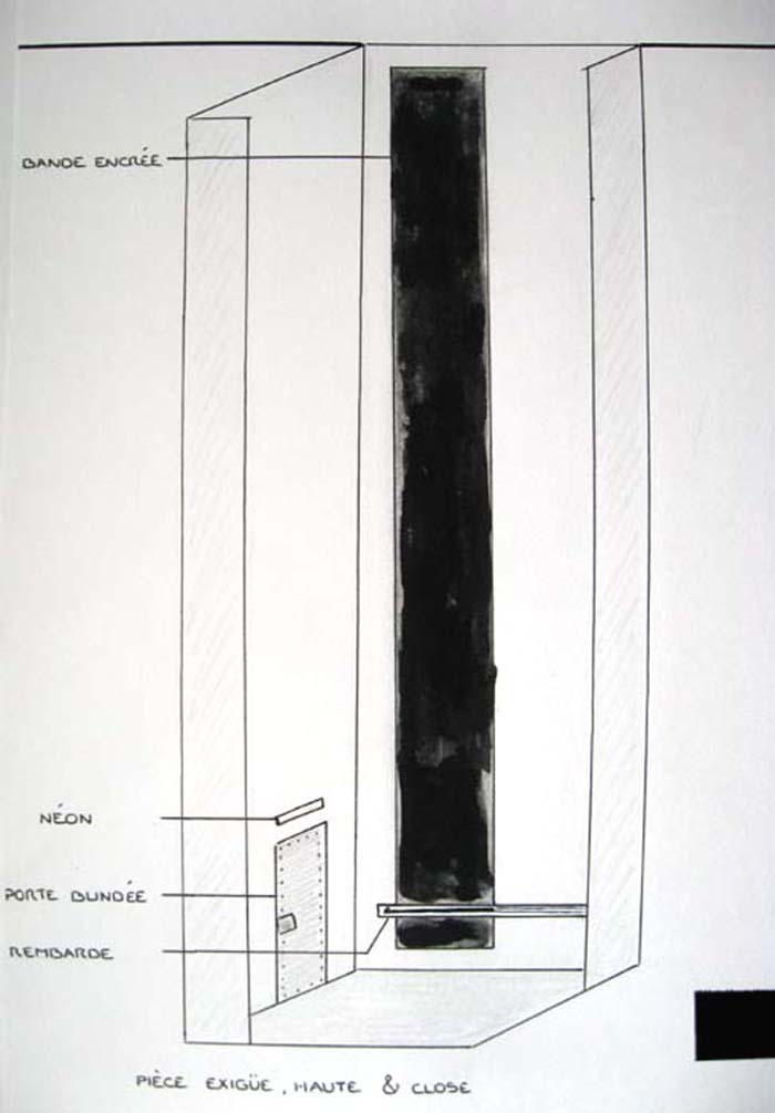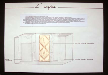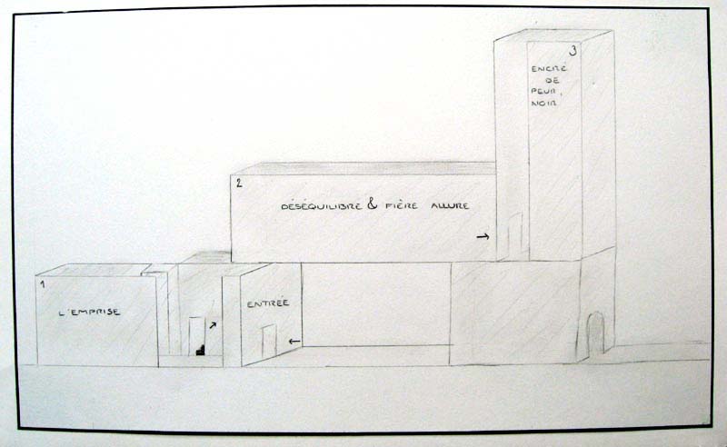 A travers textes et dessins, le projet d'un espace où le spectateur déambulerait et serait marqué par le lieu.
