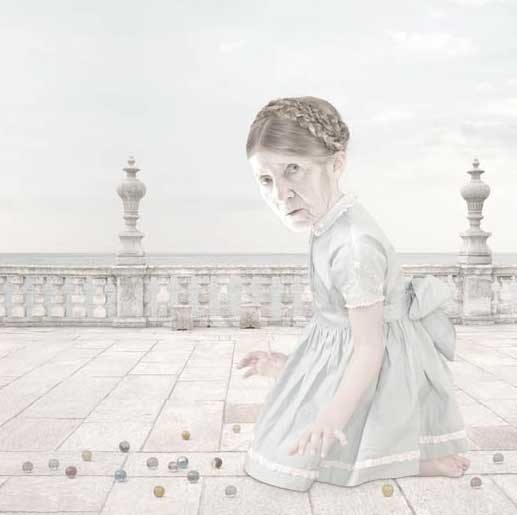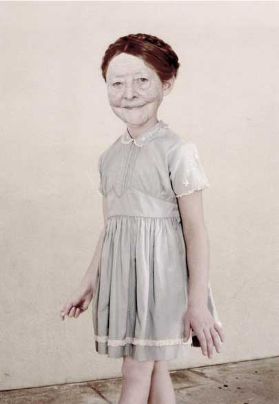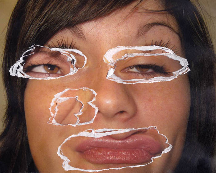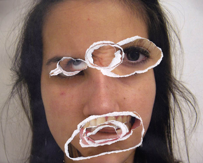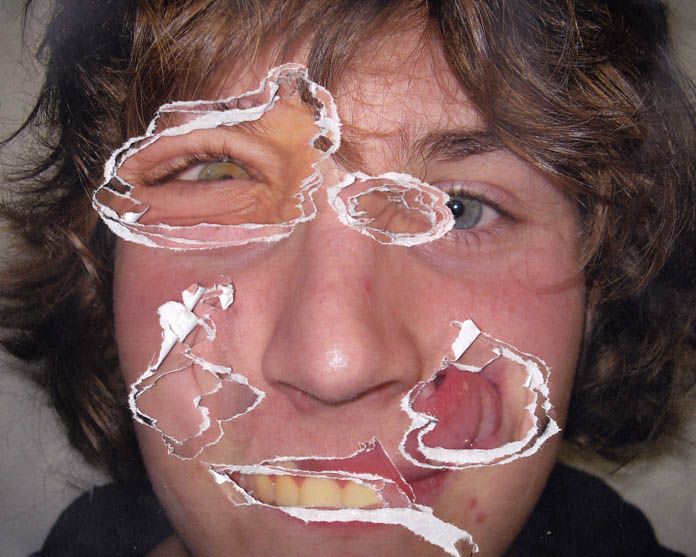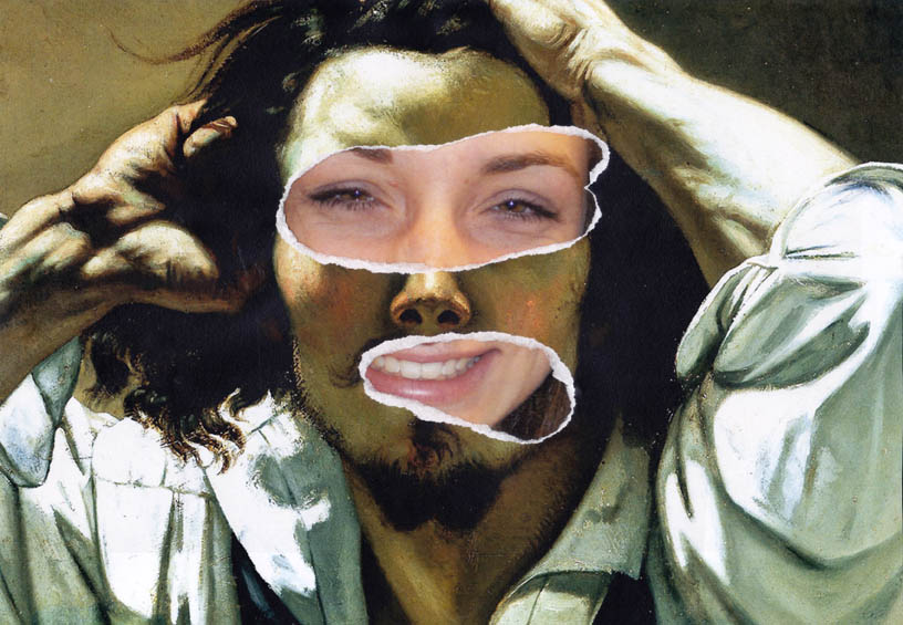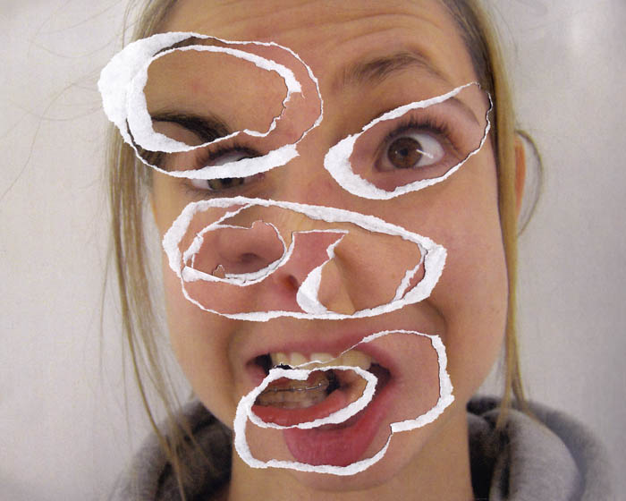 Au début de l'année, Mégane souhaitait travailler à partir de l'autoportrait de Courbet dit Le Désespéré - qui la séduisait et la touchait - mais elle ne semblait pas réellement savoir comment concrétiser plastiquement cette envie. Il est difficile d'expliquer comment elle en vint à lacérer cette image tant les causes sont probablement mêlées : geste fortuit, découverte du travail de Hains et Villeglé, ou désir d'en finir avec ce tableau aimé dont elle ne savait que faire ? A partir de ce geste inaugural, aussi simple que violent, elle développa plusieurs séries de portraits constitués de déchirures et de superpositions qui brouillaient tant la surface de l'image que l'identité du modèle jusqu'à créer, par glissements des parties et perturbations de leur échelle, ce qu'elle a nommé des monstres. Mégane développa ensuite un travail, pour partie en vidéo, qui recensait des gestes agressant finalement moins le corps que sa représentation, la violence de ceux-là se trouvant comme désamorcée par la douceur sans profondeur de l'image. Cette ambiguïté est présente enfin dans ces étranges images, travaillées numériquement à partir de photographies de Loretta Lux, où la déchirure serait suggérée par une confusion des âges, une inquiétude en suspens.