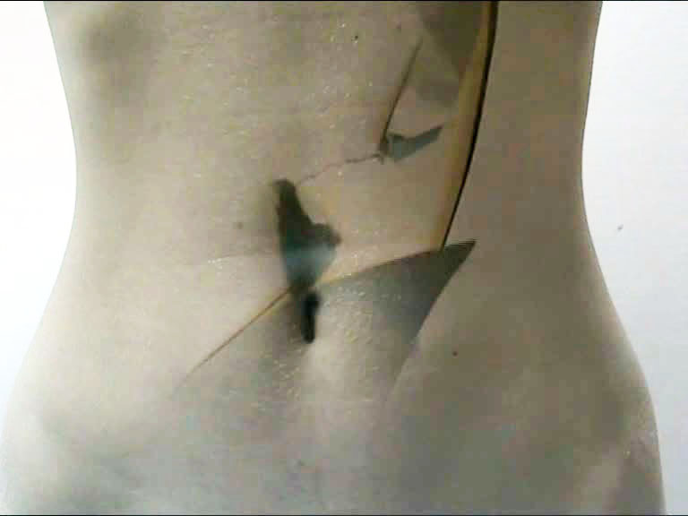 Un travail qui s'attache à montrer la part d'étrangeté voire de monstruosité du corps soumis à des superpositions, des lacérations.