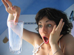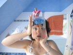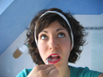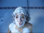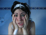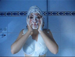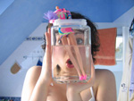 La mise en scène d'une « moi » qui se moque malicieusement du glamour avec un soupçon de légèreté. Timide, inquiète avec mes bouclettes brunes et mon rouge à lèvres rouge vif, tantôt le visage masqué derrière un dégoulinant yaourt couleur rose bonbon ou bien déformé par le verre à Barbie. Endossant le rôle de performeuse face à une caméra fixe (coincée entre le lavabo et les gels douche de ma salle de bain qui prend des allures de scène de théâtre !) j'invite le spectateur à partager de minuscules scénaris de mon quotidien. Saynètes inédites alternant pudeur et impudeur, succession indisciplinée de grimaces où le rapport au corps est pris dans le temps, l'immédiateté du réel est saisi grâce au procédé de l'« auto-filmage ».
