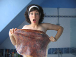 Un peu comme un spectacle dérisoire mêlant absurdité, burlesque, désordre et voyeurisme... je critique avec un regard amusé ces stupides recettes magiques de beauté artificielle qui nous étouffent à chaque minute et effacent le « je » le plus intime. Ainsi mes vidéos clips au rythme syncopé déclinent une certaine jouissance à jouer d'un regard amusé de son propre corps, de sa propre image.