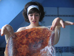 Jeu de masques, jeu avec des objets bricolés et associés comme de lointains cousins des P.O.F. de Fabrice Hybert ; mais là Amandine endosse les deux fonctions de fabricant et de performeuse ( Fabrice Hybert et Eliane Pine Carrington associés, deux en un comme dans la publicité de produits moussants), pour proposer de drôles séquences de téléachat. Pour autant les références sont à chercher ailleurs, comme dans l'univers d' « Amélie Poulain », les joutes burlesques de Buster Keaton mais surtout dans les activités polymorphes de Björk ( performances, clip vidéos, spectacles). Enfin selon Christophe Kihm, les pratiques de performance se sont, pour partie, déterminées historiquement par un rejet du théâtre en tant que lieu de représentation structuré par une une séparation salle/scène * ; Amandine abolit, à sa manière, cette conventionnelle séparation pour une malicieuse et glamoureuse traversée du miroir.