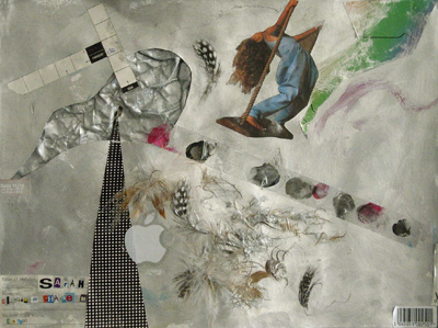 J'ai pensé au désir de m'exprimer, de créer, bien que ce soit souvent difficile de mettre des mots sur ce qu'on ressent, j'ai donc utilisé ces mots fléchés non remplis avec écrit : "désir de fabriquer". J'ai pensé aussi à la musique que j'écoute en permanence car ça m'est vital. J'ai mis le logo apple pour la symboliser car elle est sur mon ipod, j'ai aussi mis le nom d'un spectacle qui m'a beaucoup touché "base 11/19".