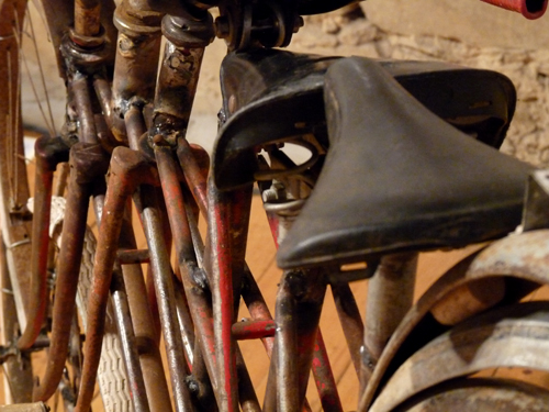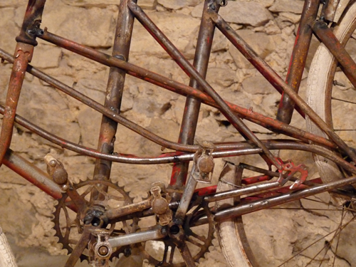 Nous voulions "mettre en action" un objet dans l'espace et le temps. Par chance, nous avons déniché trois vélos presque identiques dans une déchetterie. Après les avoir démonté, découpé, puis ressoudé, nous avons tenté de retranscrire la dimension cinétique propre à leur déplacement.