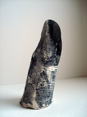 Un processus technique. Moulage en alginate du pouce puis coulage en plâtre.