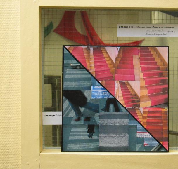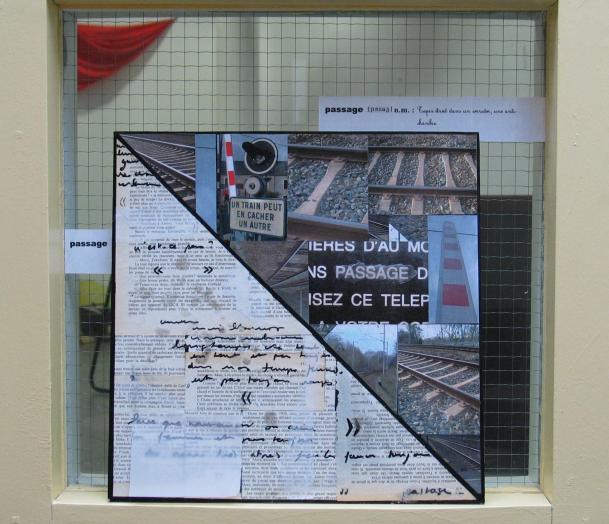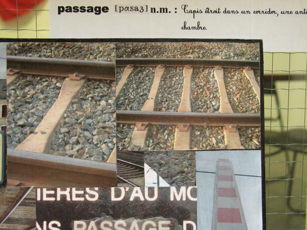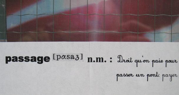 « J'ai commencé par recenser tous les sens du mot «passage» dans un dictionnaire encyclopédique. Puis, j'ai fait de très nombreuses photographies (se rapportant à ces différentes acceptions) à partir desquelles j'ai réalisé des photomontages. Dans le même temps, j'ai imprimé toutes mes définitions sur des étiquettes autocollantes.