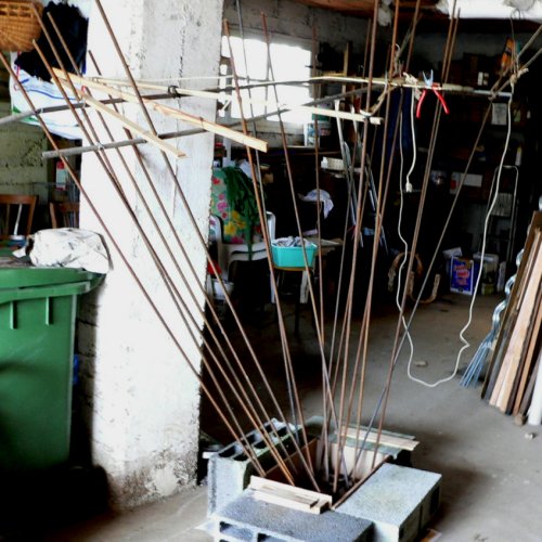 Elle a été conçue en fonction de mes caractéristiques physiques (ma hauteur et mon poids) et ses dix-huit tiges correspondent à mes dix-huit ans. Elle est destinée à n'exister que le temps que dure la Biennale de l'art contemporain à l'école de Blain, c'est-à-dire à peine un mois.