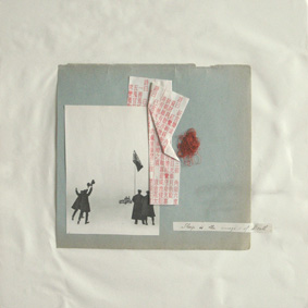 Je reconstruis alors tout le dispositif d'échange, à travers la mise en situation d'une correspondance : message fragmenté, parsemé, enveloppe ouverte, tout est mis en oeuvre pour donner la sensation d'un éclat convulsif de la parole que l'on parvient progressivement à maîtriser. Il est alors possible de rapprocher cette démarche avec certains objectifs des pratiques artistiques relatives au Mail-Art, qui détournent les systèmes de communication par la falsification de leurs composantes.