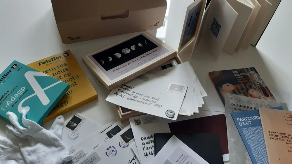 Un réseau postal : ce projet d’exposition itinérante ne pouvait faire l’économie d’une réflexion concernant le déplacement même de l’œuvre. La démarche de l’artiste, son exposition récente au Musée de la poste , le contexte sanitaire durant lequel le projet est né sont autant de facteurs qui ont déterminé le choix de l’usage du réseau postal.