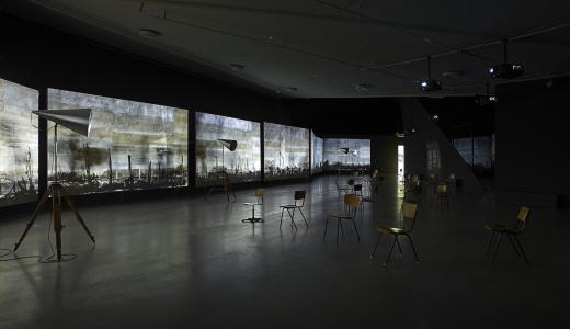 Pour O Sentimental Machine de 2015, c'est le lobby d'entrée d'un hôtel, le Splendid Palas de l'île de Büyükada en Turquie, qui est reconstitué. L'œuvre, dont le titre emprunte une phrase de Trotski, mêle des images de défilés militaires bolchéviques à celles d'un tsar au bord de l'eau ou des séquences filmées de Trotski en exil sur l'île turque. Elle est symptomatique de l'importance de l'archive dans les œuvres de Kentridge.