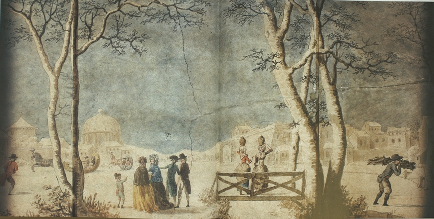 Carmontelle Les Quatre Saisons, 1798 Aquarelle, gouache et encre de Chine sur 119 feuilles de papier doublé de soie,transparent long de 42 m, Musée du Domaine départemental, Sceaux, France (détail)