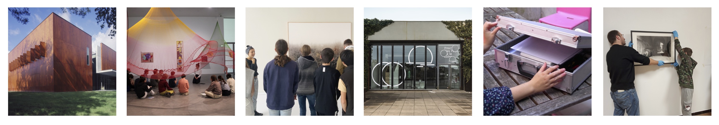 - différentes approches de l'exposition : collectives, monographiques, en écho à des œuvres de la collection du Frac, les expositions temporaires permettent de percevoir la démarche de l'artiste et le chemin de l'œuvre, le rôle du commissaire d'exposition, auteur d'un geste plastique et /ou conceptuel, d'un discours ou commentaire critique sur l'art ou responsable d'une mise en dialogue des œuvres.