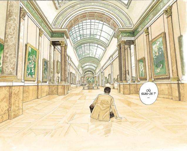 Nous plongeons une fois encore dans les méandres des salles du musée du Louvre. Cette fois le parcours prend des airs de voyages intérieurs entre hallucinations fiévreuses et réalité, entre quête personnelle et tragédie collective. C’est l’histoire d’un jeune dessinateur japonais qui au milieu d’un voyage collectif décide de faire une étape solitaire pour visiter les musées de la capitale. Jirô Taniguchi nous invite à une traversée temporelle et artistique à la découverte d’un esprit des lieux.