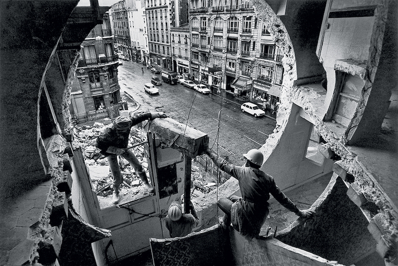 Gordon Matta-Clark & Gerry Homagimyan travaillant à Conical Intersect, Rue Beaubourg, 1975. Harry Gruyaert / Magnum Photo