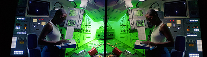 Or l'artiste a décidé de jouer avec ce dispositif. Le film raconte l'histoire d'une astronaute envoyée sur une planète inconnue et qui pense, à l'instar de son équipe, que le transfert a échoué alors qu'elle vient en réalité d'échanger sa place avec celle qui lui correspond dans un monde où tout est à peu près identique mais globalement inversé. L'écran est divisé en deux parties, parfois dissemblables, parfois opposées par une symétrie axiale :