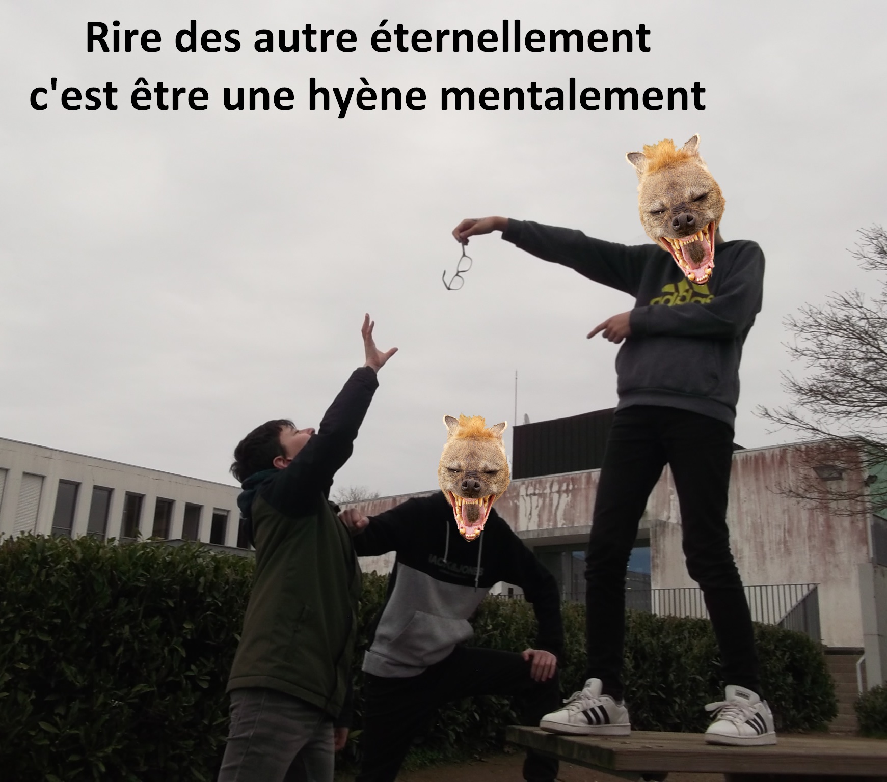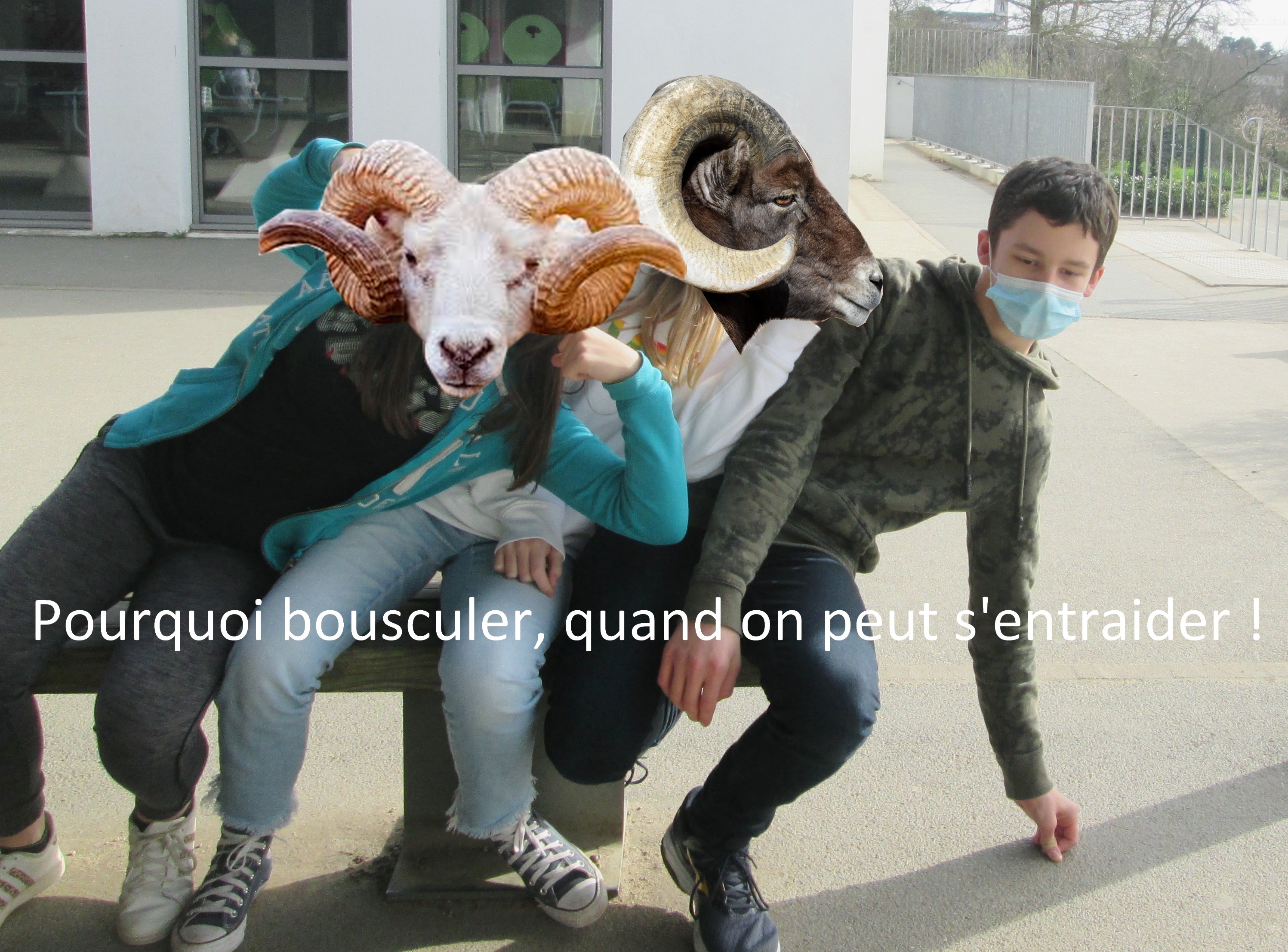 Ainsi, une même incivilité donnera lieu a deux images distinctes. L'animal et la maxime seront identiques (travail réalisé en français) mais le résultat final pourra être légèrement différent (si par exemple les élèves ne choisissent pas la même photographie au départ).