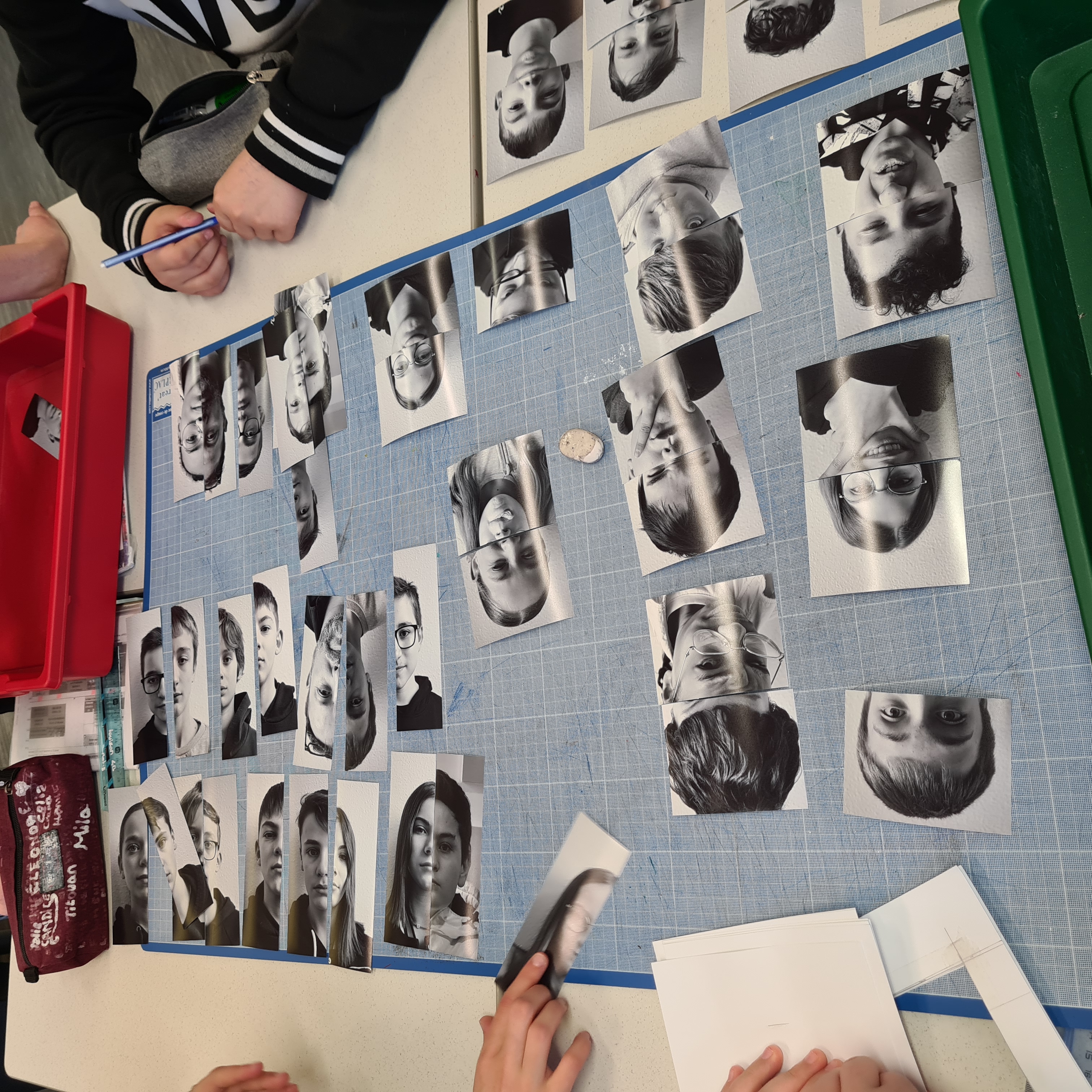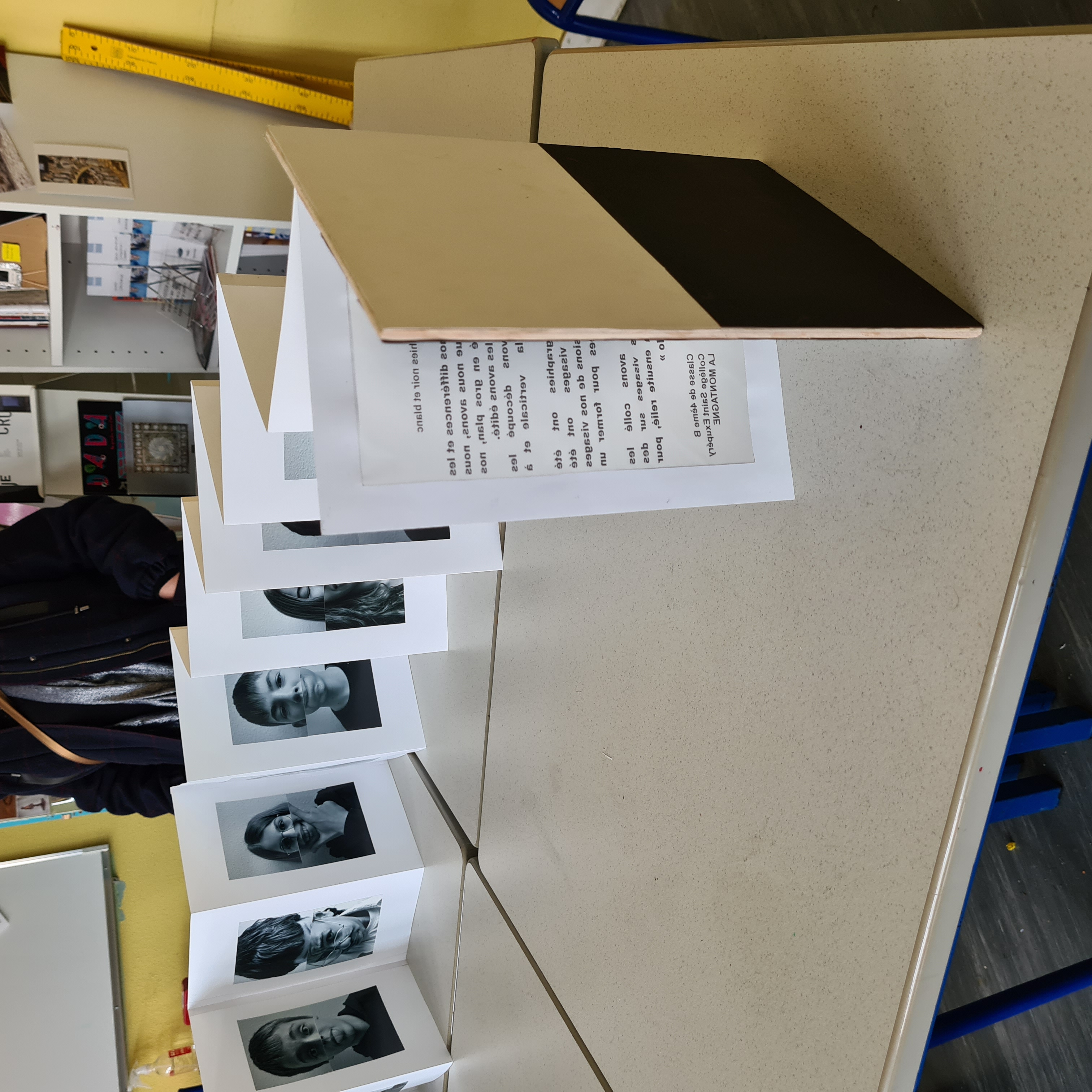 Pour finir nous avons collé les fragments de visages sur des feuilles que l'on a ensuite reliées, pour former un « leporello ».