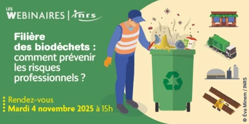Ce webinaire, consacré à la filière de valorisation des biodéchets, présentera les risques professionnels et des solutions de prévention concrètes pour l’ensemble des acteurs concernés : producteurs, collecteurs et centres de valorisation par méthanisation et/ou compostage. Animée par Christine David, Responsable du pôle risques biologiques (INRS), et Patricia Battais, Responsable de laboratoire (INRS), cette conférence en ligne s’adresse principalement aux employeurs, chargés de prévention, responsables hygiène sécurité environnement, personnels des services de prévention et de santé au travail, personnels des Carsat/Cramif/CGSS.
