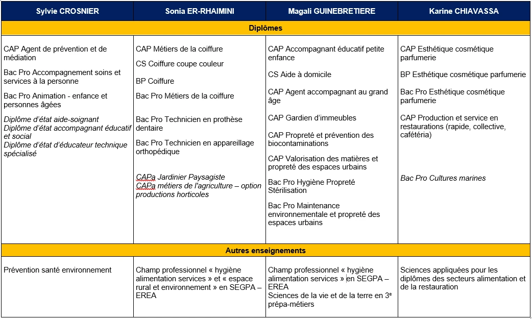 La répartition des diplômes entre les différents inspecteurs, également disponible sur cette page, vous permettra d'identifier votre interlocutrice ou interlocuteur si besoin.