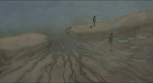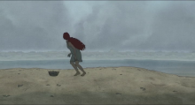 La Tortue rouge, film écrit et réalisé par Michael Dudok de Wit est sorti en 2006. Ce film d’animation est le premier à avoir été réalisé avec le célèbre studio Japonais, le studio Ghibli. Dans ce conte initiatique, un homme naufragé sur une île déserte après avoir mis en place ce qui lui est nécessaire à sa survie, finit par construire une vie amoureuse avec une tortue rouge étrangement devenue femme. Alors qu’ils semblent couler des jours heureux avec l’enfant qu’ils ont eu, un tsunami va bouleverser l’équilibre familiale qu’ils ont réussi à mettre en place dans cette nature insulaire. La séquence analysée se trouve aux 3/4 du film, là où la nature va reprendre ses droits. Elle amorce le départ du fils dans la séquence suivante.
