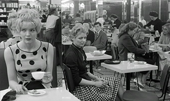 – étroitesse du couloir, regards sombres des clients.
