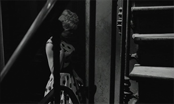 – choix de certains cadrages : faible profondeur de plan dans les escaliers + barreaux + plongée.