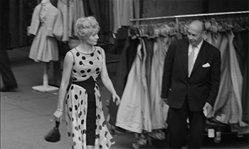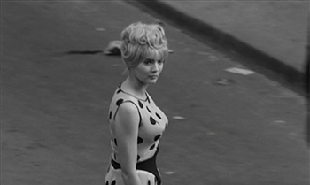 Sa beauté et la légèreté de sa robe parallèle à celle de sa démarche attirent les regards des badauds et des commerçants, démarche que Varda se plaît à suivre d'assez loin à l'aide d'un travelling latéral d'accompagnement, qui pose d'ailleurs la question du point de vue : en effet, nous sommes loin mais nous entendons tout de même certains commentaires : « Alors on se promène... ». A noter que la réalisatrice place le plus souvent possible Cléo au centre du cadre.