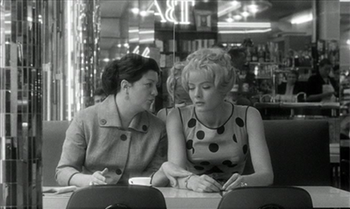 A ce moment-là du film, il y a une fracture entre la femme et l'enfant qu'elle reste dans l'attitude, point qui est relevé par Angèle tant dans ses attitudes que dans ses paroles « qu'une enfant », « ma petite fille ». Ce côté enfantin est également traduit par les mimiques faites par Cléo lors de la proposition du serveur de lui apporter un café et accentué par la remontrance d'Angèle.