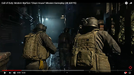 3 : Source : Call of Duty®: Modern Warfare® Trailer des coulisses du jeu : https://www.youtube.com/watchv=mFmecNg0XEI&feature=youtu.be (Video commerciale destinée à promouvoir l’ultra-réalisme du jeu. Les différents témoins sont filmés sur fond vert pour permettre l’incrustation des décors tirés de l’univers du jeu.)